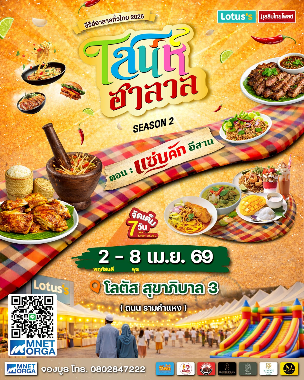 ครั้งนี้มาในธีม “แซ่บคัก อีสาน” ที่จะพาทุกคนไปสัมผัสความจัดจ้านของอาหารอีสานสไตล์ฮาลาล ทั้งเมนูยอดนิยมและเมนูสร้างสรรค์ที่คัดสรรมาให้ลิ้มลองแบบจุใจ