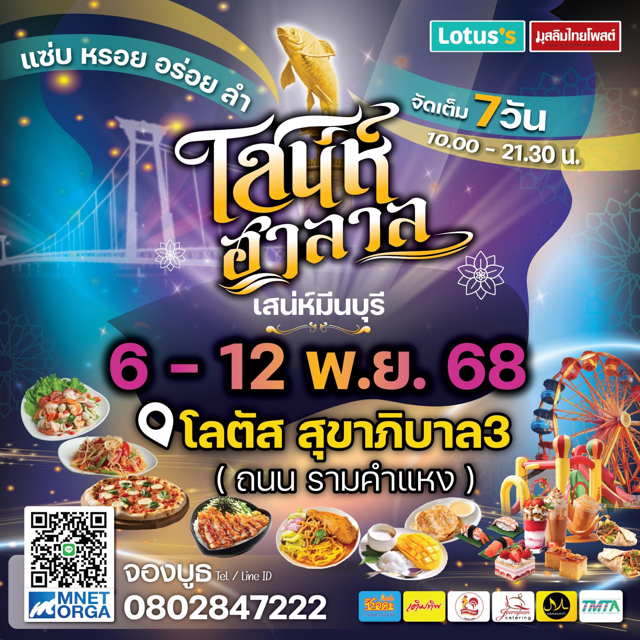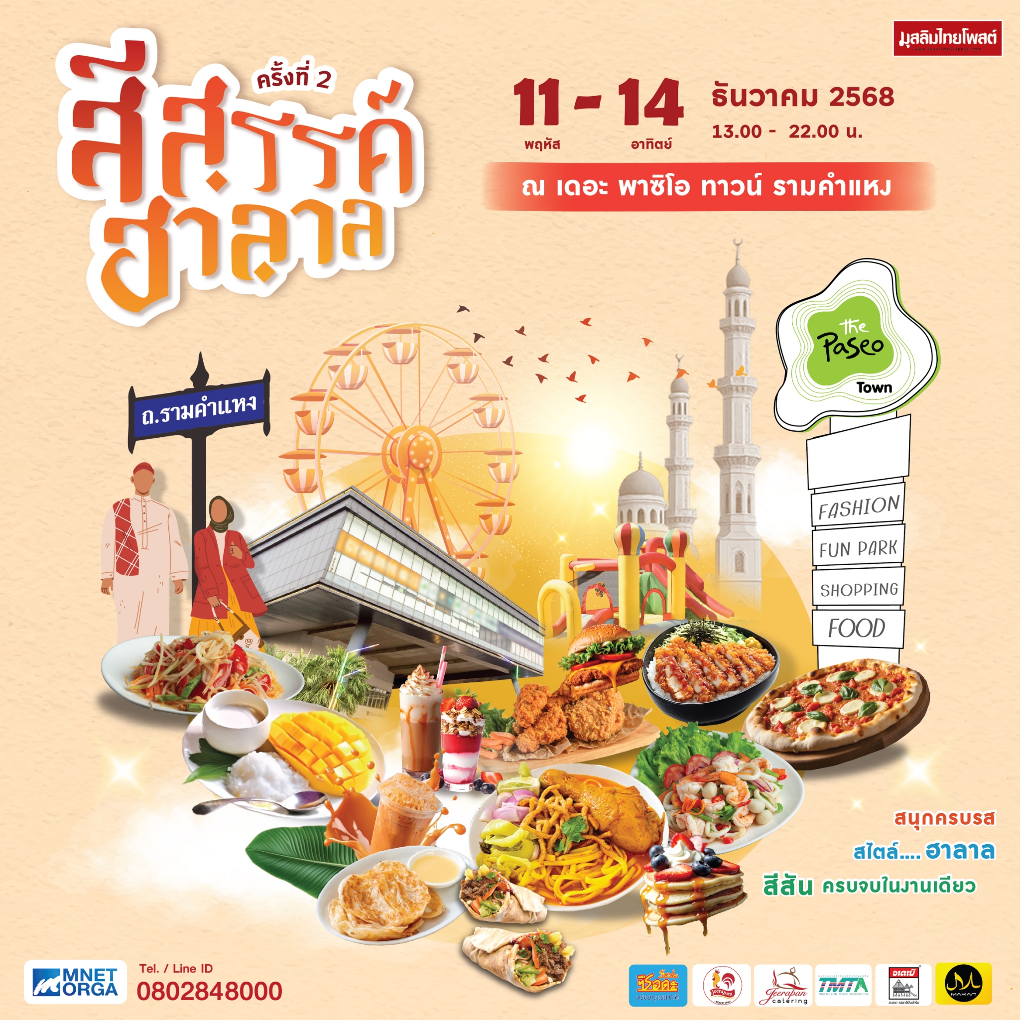 รวมร้านเด็ดงานอีเวนท์ อาหารฮาลาลกว่า 100 เมนู ข้าวขาวัว แจ่วฮ้อน ขนมไข่นกระทา เนื้อสะเต๊ะ สารพัดยำ อาหารเหนือ อาหารใต้ อาหารเกาหลี อาหารอิตาเลี่ยน เบเกอรี่ เป็ดย่าง หอยทอดกระทะร้อน ซูชิ บาบีคิว เบอร์เกอร์ พิซซ่า โรตีชาชัก อาหารทะเล เกี๊ยวซ่า กุ้งอบวุ้นเส้น ฯลฯ