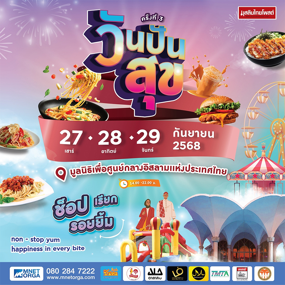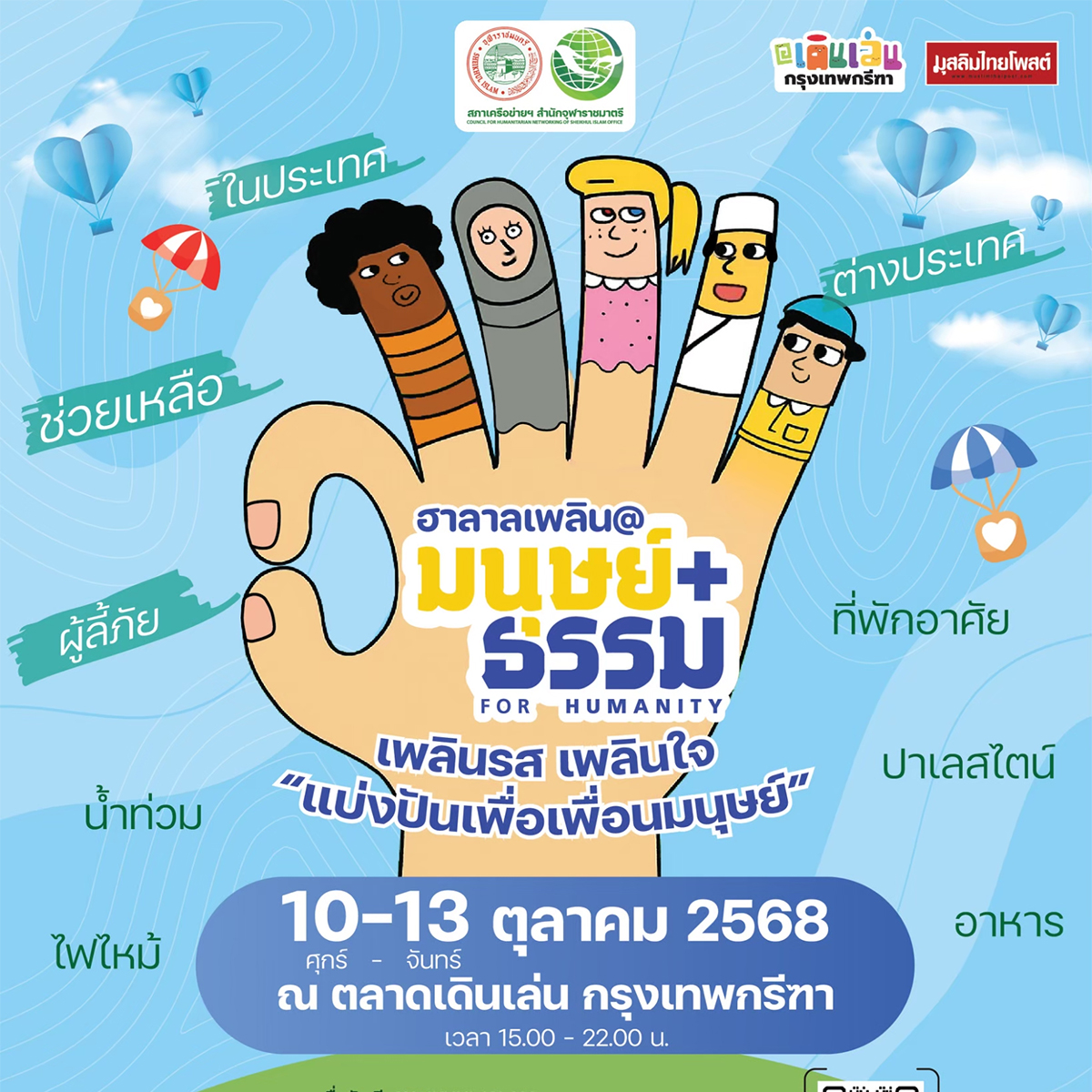 อิ่มเอมกับกิจกรรมแห่งการแบ่งปัน พร้อมสนุกสุขแบบฮาลาล ร้านเสื้อผ้า เครื่องประดับ ของเล่นเด็ก สินคาเบ็ดเตล็ด ร้านแบ่งปัน ปาฐกถา เสวนา การแสดง พร้อมกิจกรรมมากมายบนเวที
