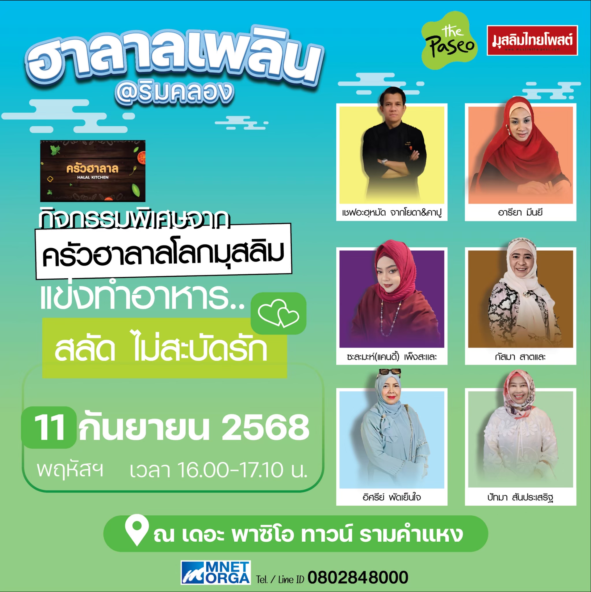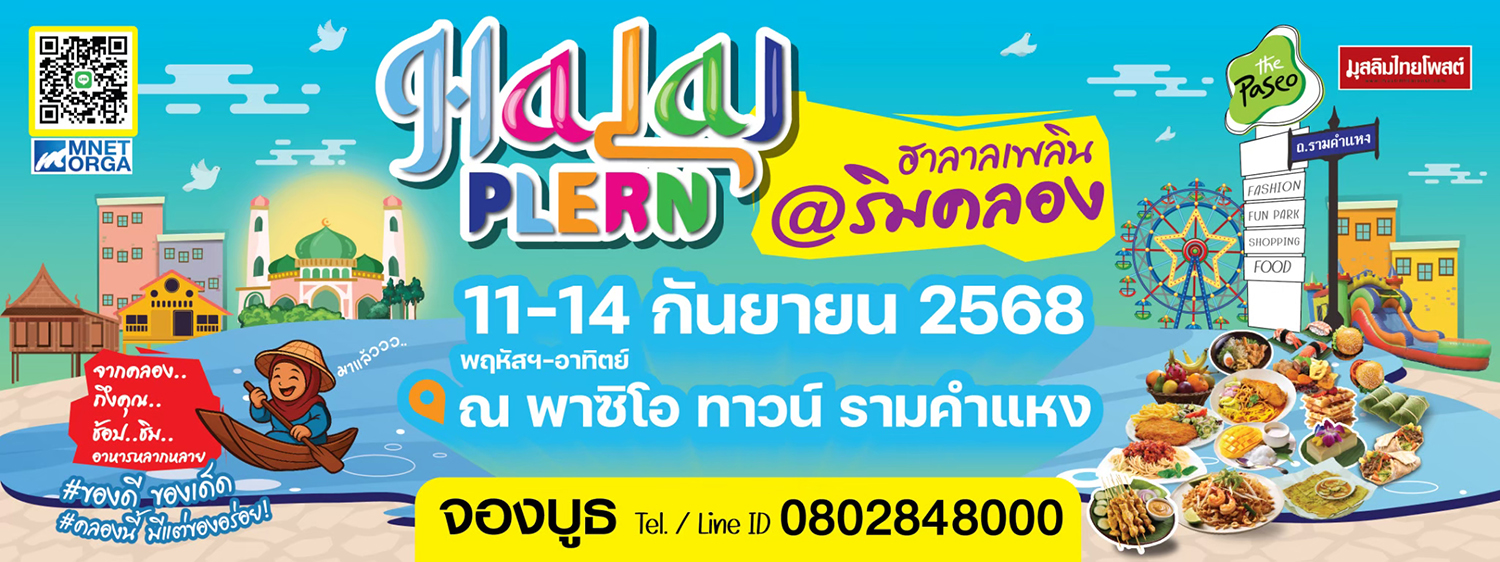 ร่วมสัมผัสบรรยากาศเทศกาลฮาลาล HALAL PLERN@ThePaseoTown จัดระหว่างวันที่ 11–14 กันยายน 2568 ณ เดอะ พาซิโอ ทาวน์ รามคำแหง ภายในงานคัดสรรอาหารฮาลาลคุณภาพมากกว่า 100 เมนู ทั้งเมนูยอดนิยมและเมนูพิเศษ อาทิ ชาชักหอมกรุ่น, ช็อกโกแลตดูไบ, ไก่เนื้อทอง, เนื้อขุนทอง, บานอฟฟี่, เบอร์เกอร์, เคบับ, หมี่ไก่ฉีก, ไดฟุกุ, ไข่หมึก, ลาซานญ่า, ข้าวซอย, ลาบทอด, ทอดมันกุ้ง, น้ำส้มบ้านไร่, ยำหอยกุ้งแช่ รวมถึงเมนูหายากอย่าง บีฟเวลลิงตัน และพ็อตพาย ให้ทุกท่านได้เลือกชิมอย่างจุใจ