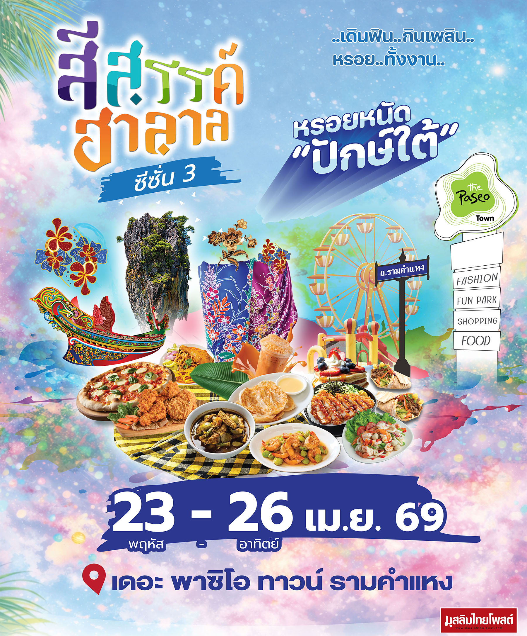 เตรียมพบกับความยิ่งใหญ่อีกครั้งของงาน “สีสรรค์ฮาลาล ครั้งที่ 3” เทศกาลฮาลาลที่รวมความอร่อยและวัฒนธรรมไว้อย่างครบครัน ณ เดอะ พาซิโอ ทาวน์ รามคำแหง ระหว่างวันที่ 23 – 26 เมษายน 2569 บนถนนรามคำแหง เขตสะพานสูง กรุงเทพมหานคร