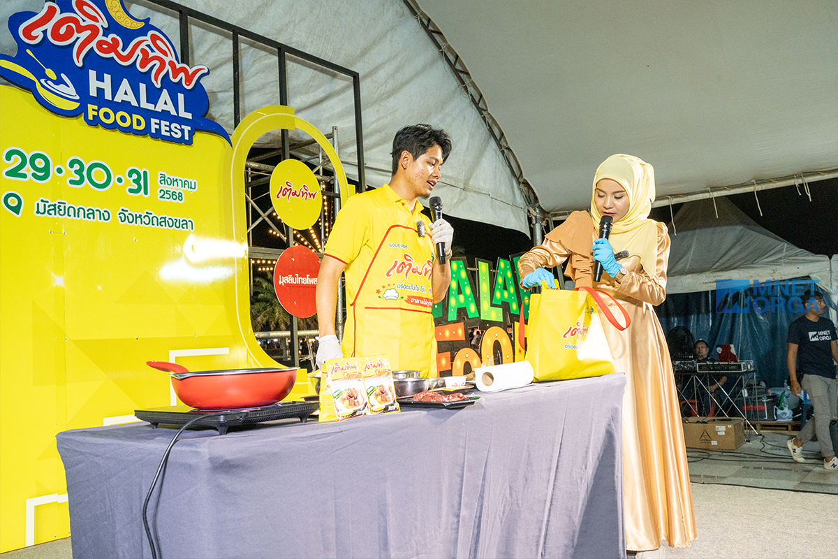 คุณอริญชย์ เพ็งแป้น ผู้จัดการฝ่ายการตลาด บริษัท วันทูเทรดดิ้ง จำกัด ผู้จัดจำหน่ายผงปรุงรส “เติมทิพ” เป็นประธานเปิดงาน - TERMTIP HALAL FOOD FEST 2025 มหกรรมอาหารฮาลาลสุดยิ่งใหญ่แห่งปี ที่จัดที่มัสยิดกลางประจำจังหวัดสงขลา ศูนย์รวมความศรัทธาและศูนย์กลางวัฒนธรรมมุสลิมในภาคใต้ งานนี้พร้อมเปิดประตูต้อนรับทุกท่านให้มาสัมผัสรสชาติ ความหลากหลาย และเสน่ห์แห่งวัฒนธรรมฮาลาลอย่างใกล้ชิด