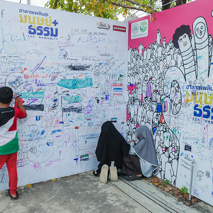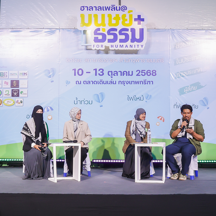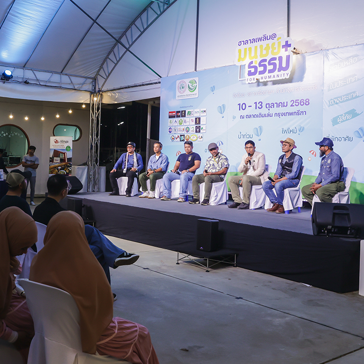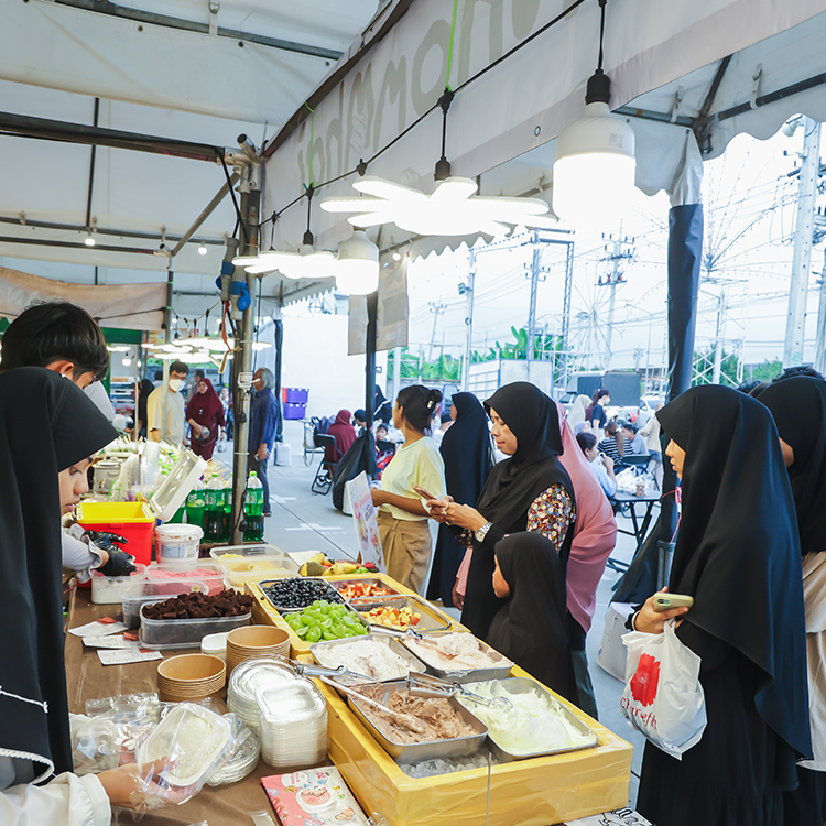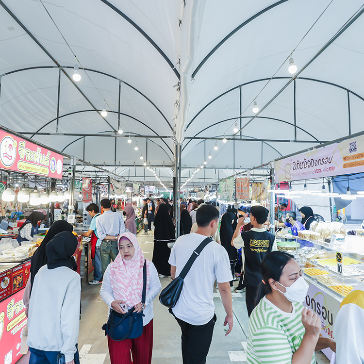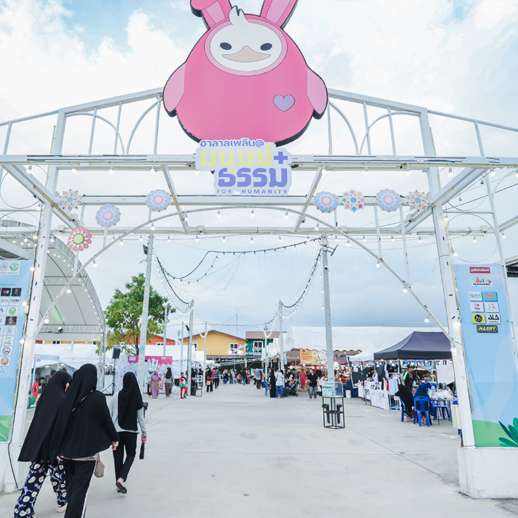 ภาพรวมบรรยากาศอบอุ่นจากงาน “ฮาลาลเพลิน มนุษย์+ธรรม” ภายใต้แนวคิด “เพลินรส เพลินใจ แบ่งปันเพื่อเพื่อนมนุษย์” ตลอด 4 วันแห่งความสุข 10–13 ตุลาคม 2568 ณ ตลาดเดินเล่น กรุงเทพกรีฑา ทุกมุมอบอวลไปด้วยอาหารฮาลาลหลากหลาย บูธกิจกรรมสนุก ๆ และหัวใจแห่ง “การช่วยเหลือ” ที่เปี่ยมด้วยรอยยิ้ม เพราะทุกคำซื้อ… และทุกก้าวเดินในงานนี้ คือพลังแห่ง “การแบ่งปัน” เพื่อช่วยเหลือเพื่อนมนุษย์ทั่วโลก